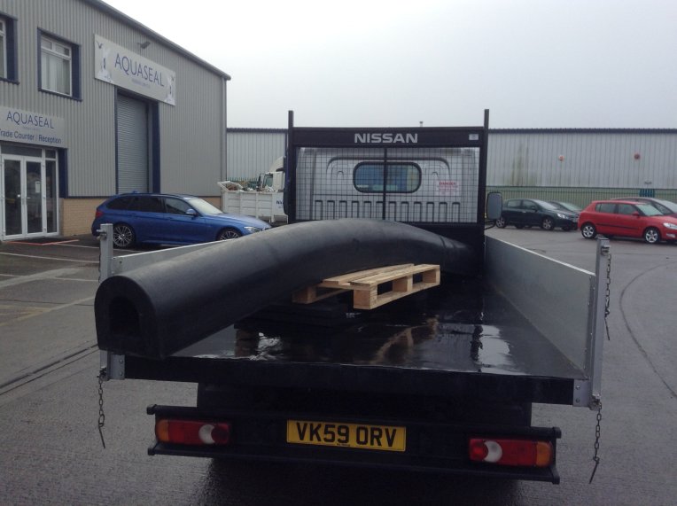 Aquaseal team jumped on the job and pulled all the stops out to get the fender made and delivered on time , We did such a good job the customer come back for the next lot of fender needed for the sister ship which docked 10 days later. see photos below of the 6 mtr long sections being loaded to the truck.